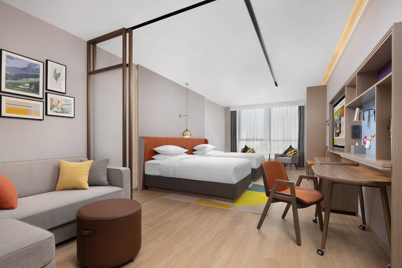 喀什古城希尔顿惠庭酒店(Home2 Suites by Hilton Kashi Ancient City) 位于希尔顿酒店喀什古城店位于喀什明宇路1号(明宇广场),酒店位置优越,交通便利,5A级风景区-喀什古城,著名景区高台民居、喀什博物馆、香妃园距酒店均在周边,周边团结路美食街、食光老街等特色当方美食满足您的味蕾。酒店交通便利,距喀什机场、喀什火车站均在半小时车程左右。我们将一直秉承高品质的服务理念和超价值的产品设计,只为让您享受每一段自在旅途中的精致休憩与高尚服务。 喀什古城希尔顿惠庭酒店客房,其中包括舒适大床房,灵动大床房、灵动双床房,灵动豪华大床房,灵动豪华双床房、全能套房及亲子套房,酒店设置有绿洲大堂,灵动用餐区,健身房&洗衣区,高吧座位区&上网打印区,以及24小时开放的心选小铺和免费自助饮吧,灵活的空间恰到好处地配置了多种居家设施,让宾客得以保持原本的生活方式,像在家一般轻松自在,感受“乐居由你 Free to be you”的旅居体验。