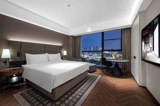 房间空间开阔,格局很适合家庭出行,白天采光充足,晚上落地窗很有氛围。床品舒适,全屋智能控制很方便;卫生间干湿分离,智能马桶、Appeles洗护都很到位,淋浴水压足、热水稳定。走廊与房间隔音不错,休息很踏实。