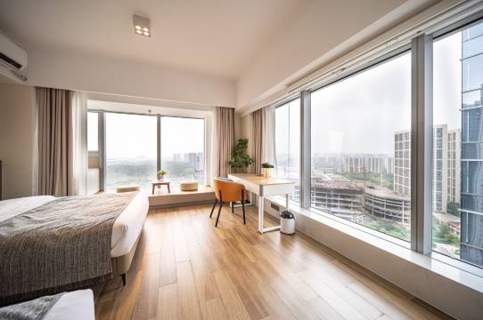 地理位置挺好的,挨着地铁,出行方便,万汇城地下一层吃饭的也很多,去青奥看演唱会坐一站就到。酒店公寓房间宽敞明亮,干净整洁,设施设备齐全,价钱也不会贵,性价比挺高的,推荐入住。