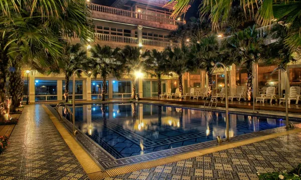 游泳池是温泉水,小孩玩到晚上也不怕冷,去沙滩回来有水也有风枪可以清理,服务和设施都很棒,尤其是早餐真的超级丰盛