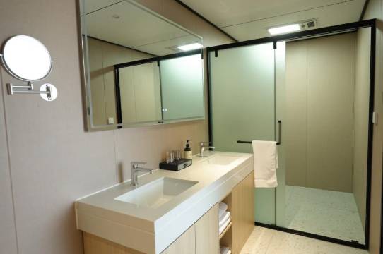 智能化配置更是加分项:全屋支持智能客控,躺在床上就能用语音调灯光、关窗帘,懒星人太爱了;卫生间的智能马桶也很贴心,还有一次性消毒湿巾,加热座圈,细节处满是舒适感。自驾来的朋友也能放心,酒店停车非常方便,车位充足还靠近客房电梯,搬行李完全不费劲,下次来还选这儿!