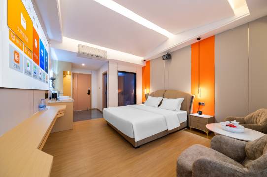 本店潮州古城旁的智能轻奢旅居空间 本店位于湘桥区永春北路4号,本店以现代智能科技与舒适住宿体验为核心,打造高品质客房。本店采用现代简约设计风格,空间宽敞明亮,干湿分离卫浴,搭配高清投影、智能客控系统,让您的入住既便捷又充满科技感。无论是家庭出游、朋友聚会,还是独自探索潮州古城,这里都能为您提供安静、舒适、贴心的下榻体验。 核心亮点 新开业|设施先进|干净整洁 酒店新打造,客房及公共区域均采用环保材料,设施崭新,每日严格清洁,确保每一位客人都能享受安心、舒适的入住环境。 智能客房|高清投影|舒享睡眠 所有房间配备智能客控系统,灯光、空调、窗帘一键调节,搭配高清投影仪,让您躺在床上即可享受影院级视听体验。床品精选优质棉织品,贴合人体工学,助您一夜好眠。 静谧环境|躲开喧嚣|深度放松 酒店选址避开主干道,周边无车流噪音,夜晚安静怡人,特别适合追求高质量睡眠的商务人士或度假游客。 潮州古城核心区|出行超便利 步行/打车5分钟可达广济桥、牌坊街等潮州地标景点 周边覆盖市中心购物中心、餐饮娱乐区 周边美食林立:潮汕牛肉火锅、砂锅粥、大排档等步行可达,满足您的味蕾需求 暖心服务|24小时响应 前台服务团队热情周到,无论是旅游咨询、行李寄存,还是客房需求,都能快速响应,确保您的入住无忧。 适合人群 家庭出游——房间宽敞,安静舒适,亲子友好 朋友结伴——智能投影+舒适环境,聚会更尽兴 商务差旅——高速wifi+静谧氛围,办公休息两不误 独自旅行——贴心,探索潮州古城的理想驿站 选择本店,开启您的潮州惬意之旅! 无论是品味潮汕美食,还是漫步古城小巷,这里都是您旅途中的温馨港湾。立即预订,享受智能、舒适、便捷的潮州住宿体验! 地址:潮州市湘桥区永春北路4号(导航搜索本店) 注:具体景点距离及交通信息以实际导航为准,详情可咨询酒店前台。