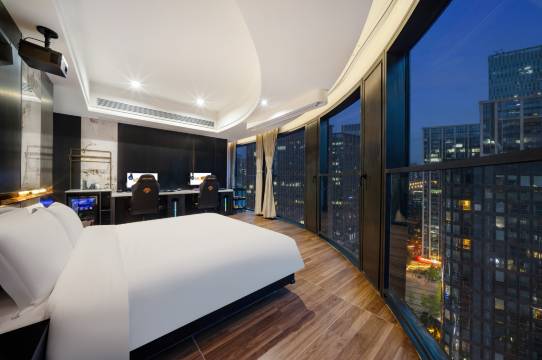 完美满足电竞+休憩需求!高空视野缓解游戏疲劳,设备专业无卡顿,床品亲肤有品质。淋浴间干湿分离很贴心,下次还会选择这里!