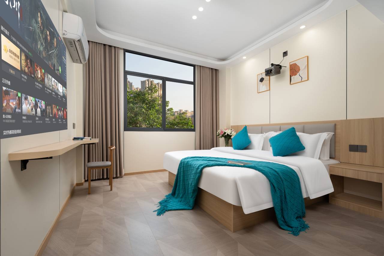 这是第二次住这个酒店,上次来这边的时候就是住的这个酒店,住的很舒服,房间也特别干净,前台服务很好,这个房间有投影,屏幕特别大,而且很清晰。周边什么都很方便,离地铁站就几分钟的路。