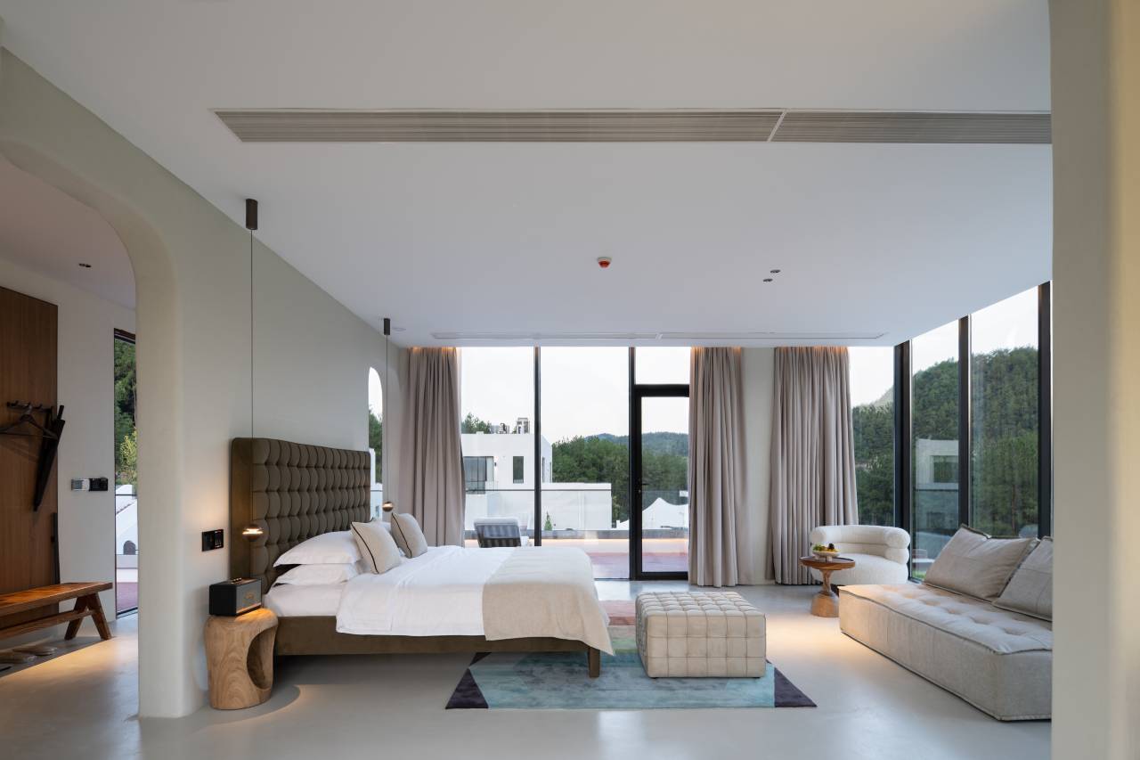 房间挺大的,有一个庭院窗户不能开,但是有落地玻璃窗。里面有梅花鹿跟小羊,可以给小朋友玩。酒店应该有30来套房间以白色为主,比较好看,照相很出片。酒店自驾过去很方便。在一个景区的里面,酒店会过来接送你。比较适合发呆。酒店的管理很人性化,而且很用心,里面有很多送给客人吃的喝的,饮料水果非常周到,还有晚饭吃。值得推荐。