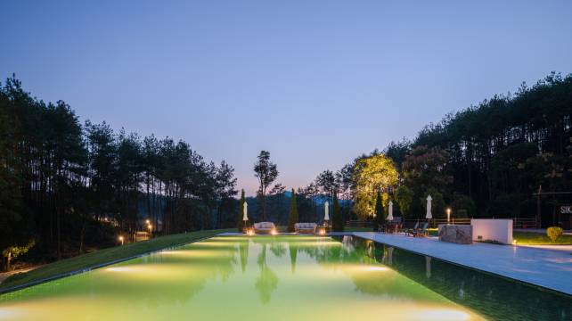 我家老二一进入酒店就被美到了,还问这个酒店是不是有游泳池啊,我感觉这像海边度假酒店。在这个户外泳池游泳就像徜徉在天地间,呼吸间传来松林的清香味。