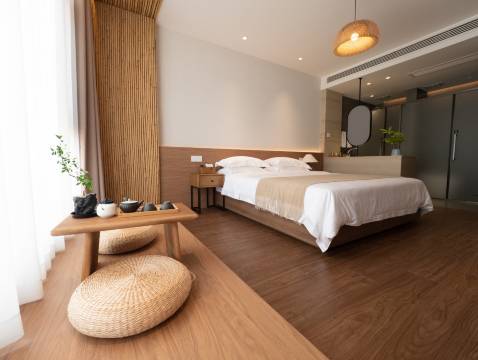 民宿坐落于天台山风景区这片钟灵毓秀之地,与诸多著名景点咫尺相邻。 与赤城山风景区遥相呼应,那一抹丹霞赤壁仿佛为民宿增添了一抹雄浑壮丽的背景色,让您在享受静谧住宿的同时,能随时领略自然奇观的魅力。国清寺的悠悠钟声,穿越千年岁月,在民宿周围轻轻回荡,为您带来空灵祥和的心灵慰藉,仿佛置身尘世之外。而与合和商业街仅一路之隔,让您在感受古韵之余,也能便捷地融入现代商业氛围,体验购物、餐饮与娱乐的多元乐趣。 民宿对面便是游客中心,去往各大景区的接驳车就在此处等候,轻松开启您天台山的全景之旅。无论是探寻华顶国家森林公园的原始森林秘境,还是漫步石梁景区感受飞瀑流泉的震撼,接驳车都能带您迅速抵达。那里有充满生活气息的九九回归林,漫步其间,能品味到天台山的历史文化底蕴与人间烟火交融的独特韵味。民宿精心打造多种类型客房,以满足不同旅客的需求。温馨简约的标准间,配备舒适的床铺与齐全的现代化设施,让您在疲惫的旅途中能迅速恢复精力;宽敞明亮的大床房,柔软的床垫与精致的床品,为您营造浪漫温馨的睡眠环境;还有家庭套房,空间布局合理,多个房间可供家庭成员共同入住,既保证了私密性,又能在客厅等共享空间尽享天伦之乐。每间客房均装饰典雅,融合了现代简约风格与天台山的地域文化元素,细节之处尽显品质与用心。房内设施一应俱全,高速无线网络让您随时与外界保持联系,独立卫浴间提供 24 小时热水供应,还有贴心准备的高品质洗漱用品。部分客房还带有观景大窗,凭栏而望,或是青山翠绿,或是人间烟火,皆可尽收眼底,让您在房间内也能尽享天台山的迷人风光。 在这里,时光慢下脚步,让您拾获旅行中最珍贵的宁静与美好。