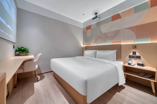 房间收拾的很干净,床品摸着很舒服,睡起来挺踏实的,床单被罩都是新换的,没有异味。空调制冷制热都挺快,隔音也还行,晚上没怎么听到外面的噪音。卫生间打扫得挺彻底,热水很足,水压也合适,洗澡很舒服。