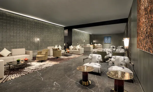 进门抬头就看到大堂那条“一线天”光带绝了!朋友说灵感来自蜀地山谷,抬头真有种豁然开朗的感觉。