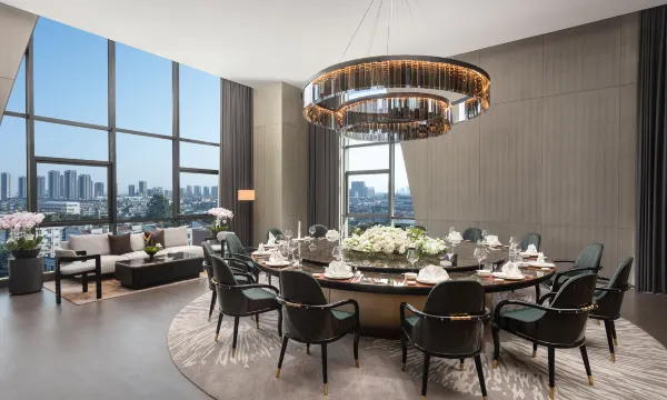 成都中鸿温德姆至尊酒店坐落于成都市十陵街道蜀王大道北段89号,地理位置优越,交通便利。酒店毗邻地铁4号线十陵站和成洛高速出口,距成都东站仅驾车约4分钟,是前往成都主要旅游景区的必经之地。酒店紧邻成都大学和青龙湖湿地公园,周边环境优美,景色怡人。酒店房型丰富多样,包括豪华大床房、豪华双床房、豪华湖景大床房、豪华城景双床房、熊猫主题亲子房、至尊大床房、至尊湖景大床房、至尊城景大床房、商务套房及至尊套房,房间面积从45平方米至180平方米不等,设施齐全,满足不同宾客的需求。酒店设有全日制餐厅,全天候提供零点餐品及自助餐,汇聚国际风味佳肴和各类健康美食,让宾客尽享美食盛宴。中餐厅拥有11间私人包厢,呈现地道的本地特色菜肴及环球美味,为宾客带来非凡的用餐体验。酒店配备8个大中型多功能宴会厅,可根据宾客需求量身定制各类会务和会展服务。大宴会厅装修高贵典雅,可同时容纳500人,是举办大型活动的理想场所。大堂吧提供精致下午茶、多样化商务简餐及各式香茗、洋酒,是商务会谈和休闲放松的优雅之选。此外,酒店还为宾客特设康体中心和娱乐设施,包括棋牌房、健身中心、游泳池,宾客可以在此舒缓身心,享受愉悦的度假时光。