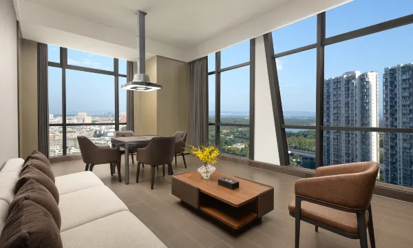 办理入住退房的前台工作人员Nora效率超高,态度还特别亲和,不仅耐心解答问题,还会贴心推荐周边美食,机器人送外卖这些服务也特别到位,全程体验感超棒。房间空间超大,全新的五星装修,全屋智能控制超便捷,床品软乎乎的特别舒服,卫生间干湿分离,卫生清洁做得极致到位,开窗还能看到湖景/城景,视野超赞,房间还贴心准备了欢迎水果,细节感拉满。