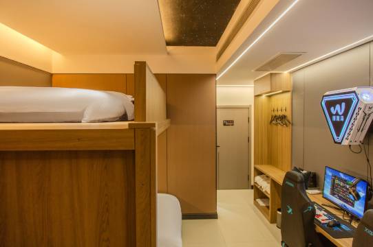 隔音特别好,很多电竞酒店隔音都不行,但是这家真的隔音好,只要隔壁房间和自己房间的门窗都关上就完全听不见吵