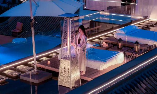 福泉榕墅酒店作为福泉当地高端民宿度假酒店,集智能客房、无边泳池、天台酒吧、大堂咖啡吧、入户花园、健身房、温泉泡池于一体,坐落在风景如画的福泉古城南城门平越府广场旁,坐拥依山傍水的优越位置,尽揽犀牛河畔风光,是您日常休闲、亲朋聚会、Party派对、商务出差、度假旅游的优选。