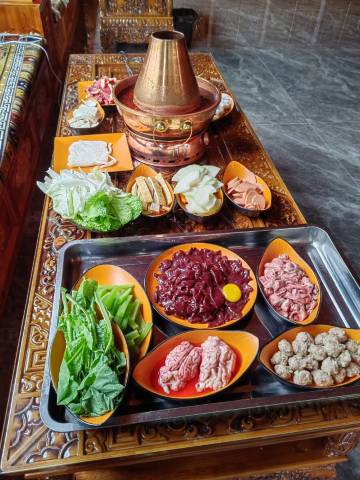 3.饮食条件:酒店费含早餐,稀饭、包子(肉包子,很好吃)、馒头、鸡蛋和1份小菜,让人在晨光中品味到家的味道,温暖而美好。晚餐是自费,点餐,藏式火锅和川菜,味道不错。