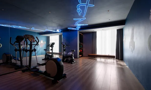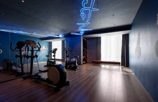 酒店设计的很漂亮现代,配色也很高级,房间很干净,配套智能,空调灯,窗帘,投影仪都可以用小度控制很方便,就是房间无主灯设计会有一点暗,