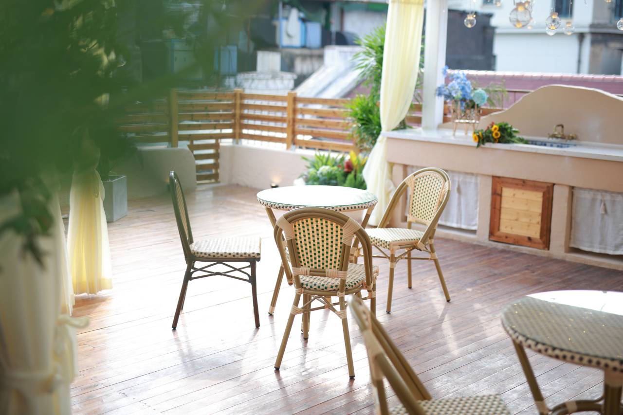 这个酒店隐藏在江汉路街道里,闹中取静,周边的建筑保留着老城破旧的样子,充满生活气息,而这个民宿却保留着法式的风情,据说即将满一百年历史,最早的主人是法国人,所以它的装修保留着原来的样子,充满故事感。适合朋友、闺蜜、恋人,坐在阳台或者楼顶的藤椅上喝一杯下午茶,吹着小风,安享幽静的时光,听着远处的街边演唱,你会感受到不是来住一晚而已,是来度假。