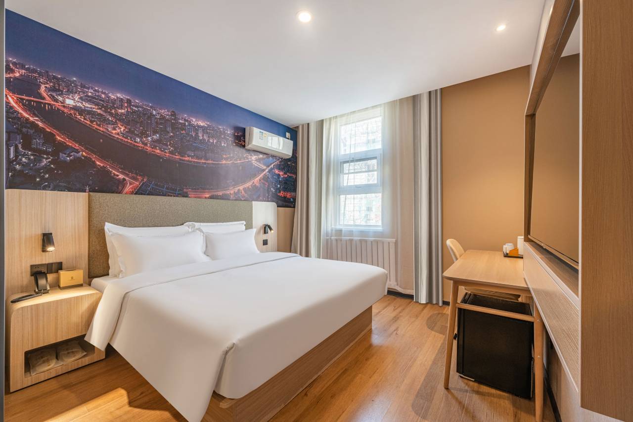 酒店就在市中心,非常方便,下次来还会住,服务员热情,酒店床品好,热水好,暖气足,特别是机器人服务很棒