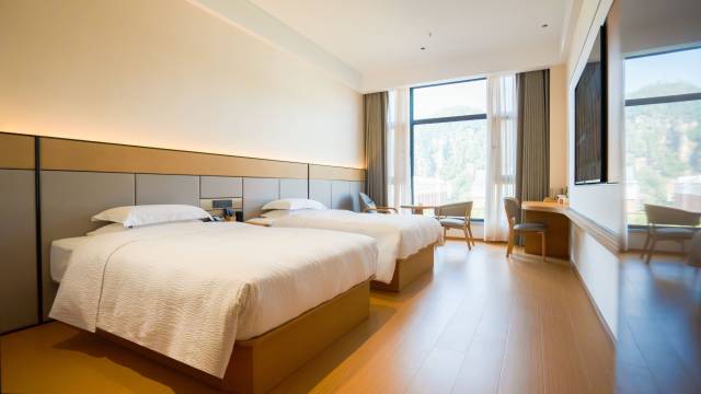 拖家带口回乡过年,本来定了双床想着挤一挤,登记时前台提醒有亲子房,真是没想到。两张床其中一张1.5米,二完美适配二胎家庭,而且房间面积大。干净安静舒服的过了个好年!