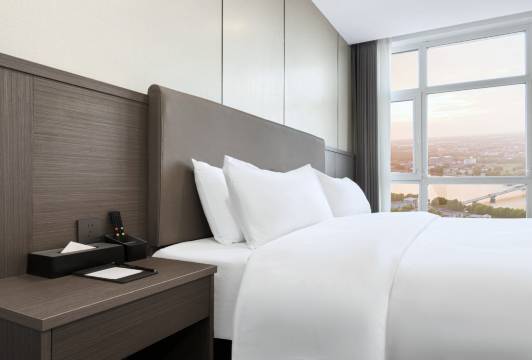酒店房间干净整洁,通风采光好,房间有智能语音服务;酒店前台服务热情,大堂美女经理沟通好,早餐丰富,小米粥不错。