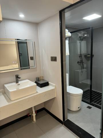 酒店就在地铁站旁边 装修环境不错 门口有停车场 一楼有台球厅 水吧 入住体验不错 下次出差还会来