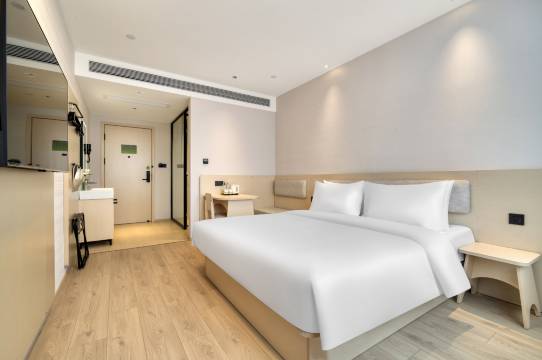前台接待热情专业,入住和退房流程高效。房间干净整洁,床品柔软,隔音效果好,晚上休息非常安静。酒店装修风格现代,大堂和公共区域设施齐全,使用便利。交通便利,步行5分钟就是火车站,出行无后顾之忧。