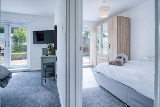 欢迎来到我们位于格莱斯的迷人度假小屋,这里是寻求宁静与安宁的客人的完美度假胜地。这家宜人的住所是探索各种当地景点的理想基地。驱车片刻即可到达迷人的海滩、风景秀丽的布雷肯比肯斯和充满活力的斯旺西中心,以及周边地区的所有精彩景点。小屋的车道上设有充足的停车位,可停放多辆车,还有一个宽敞的花园,配有户外家具,供您放松身心,享受新鲜空气。走进去,舒适的客厅将迎接您的到来,客厅配有两张宽敞的沙发、智能电视和免费 Wi-Fi,非常适合那些放松的夜晚或经过一天的冒险后放松身心。该住所包括三间舒适的卧室:主卧室位于后方,配有一张特大号床和迷人的法式门,可直接通往露台。第二间卧室配有一张双人床,还设有通往露台的法式门。