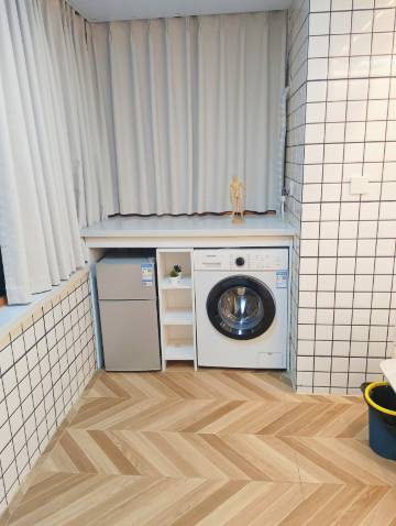 房间装修是小清新风格,环境真的挺好,房屋也隔音,而且超赞的是有独立的洗衣机!也有做饭的台面以及洗菜池,小米的大电视也很给力!推荐!