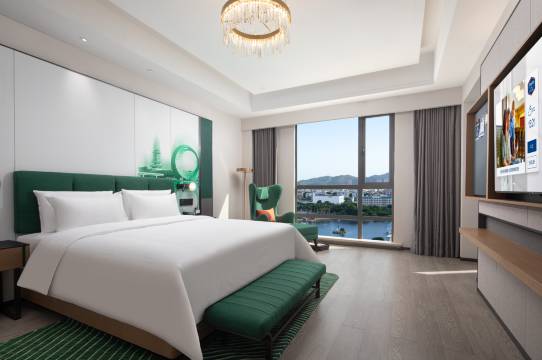 房间设施齐全智能方便完善,这家酒店环境优雅、服务好、很安静、值得推荐入住!!!酒店设计不错,非常的干净, 性价比又高,床品很舒服,枕头的高度对我来说也是刚刚好,房间隔音效果非常好!最最感动的是服务态度相当好,白天基本上不用开灯,因为房间采光非常好,给人非常舒适惬意的温馨感,还能看见湖景,景色真的很不错哦!前台小姐姐服务周到细致的服务态度,笑容亲切甜美,有求必应,及时解决客人的问题。酒店设备齐全, 房间有免费矿泉水,热水壶等。整体来说真的很不错,值得推荐,服务更没得说了,非常高兴选择了贵酒店度过这次旅程,整体体验远超预期,必须给予五星好评!