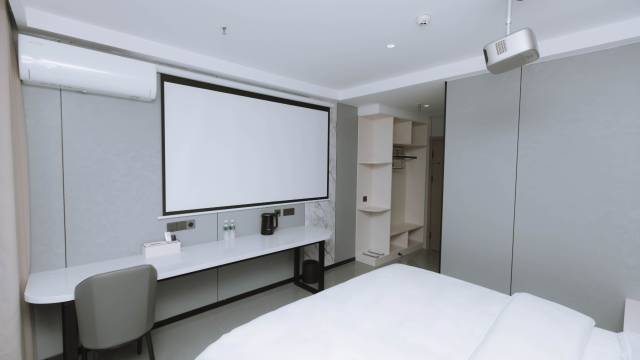 房间投影清晰,晚上点了个外卖边吃边看电影,氛围感拉满,总体体验感很不错。