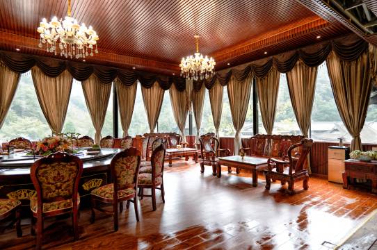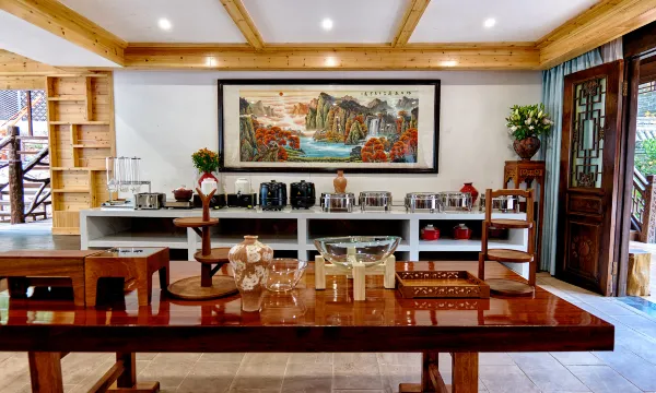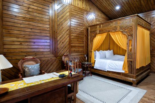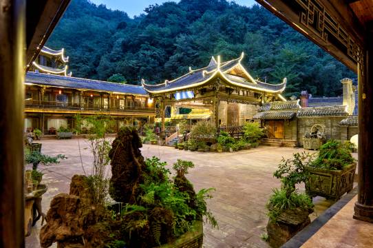 全木质家具,早上可以打八段锦,据说张三丰在此修炼。温度比成都低4-5℃,郁郁葱葱,可以泡温泉,住一晚一定能让人心旷神怡。