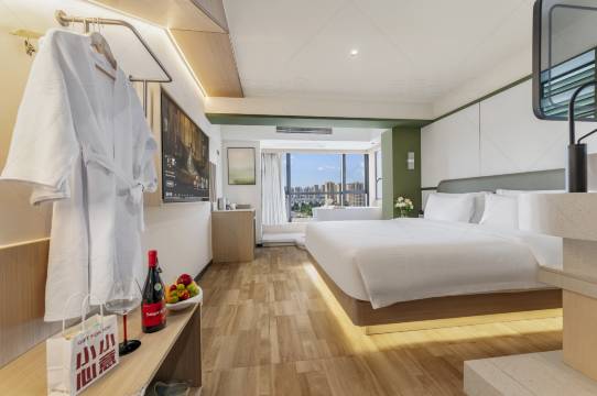 和老公出来住的离高铁站很近,酒店在13楼,进去光线非常的好,楼层这么高了酒店都还专门配了一次性的耳塞,感觉非常的贴心!!床单也很干净,最细心的我觉得是那个拖鞋,都是密封好了的,不像很多酒店是直接放在那里的,让人感觉很安心,很卫生!前台小姐姐也非常的热情,会推荐很多好吃的,主要是我也很喜欢吃😄总体不错的!值这个价格!!🥳🥳🥳