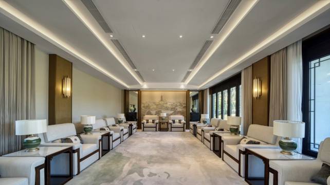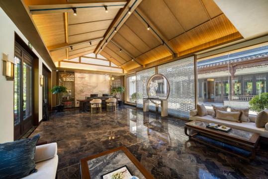庭院式别墅设计风格,非常喜欢!江南的独特风格!特别喜欢酒店的公共区域,环境没得说,安静又鸟语花香!早餐时配好的,也很不错!