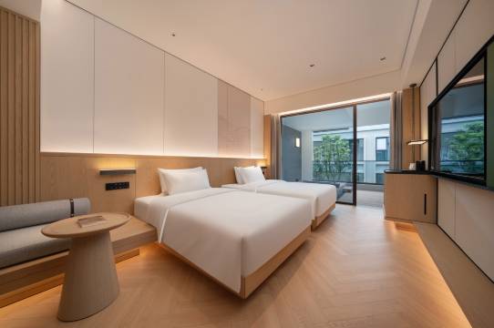 华住旗下高端品牌之一,都是连体别墅。和温泉山庄是对门,很好找。有桌球房、健身房、洗衣房、餐厅、私汤温泉♨️,很方便。早餐很丰盛,不亚于星级酒店。新开酒店,房间很干净,饶经理、前台小哥和全体服务人员态度都很好,夏季主动提供冰矿泉水、冰柠檬茶,有至游客中心的免费接送。在房间就能看日出、明月,值得推荐!