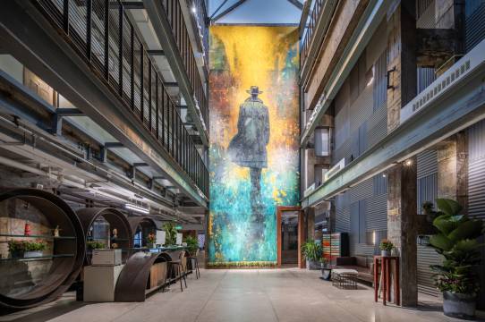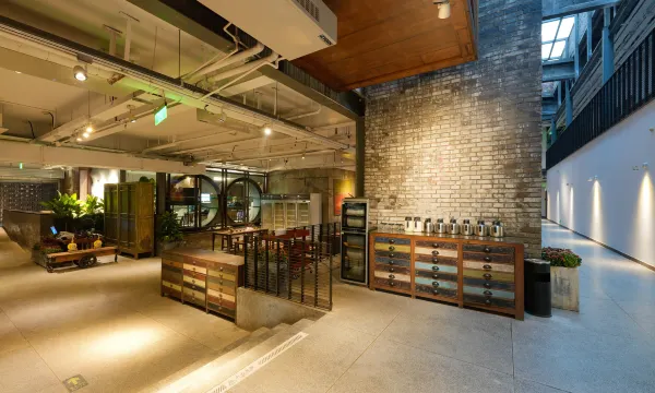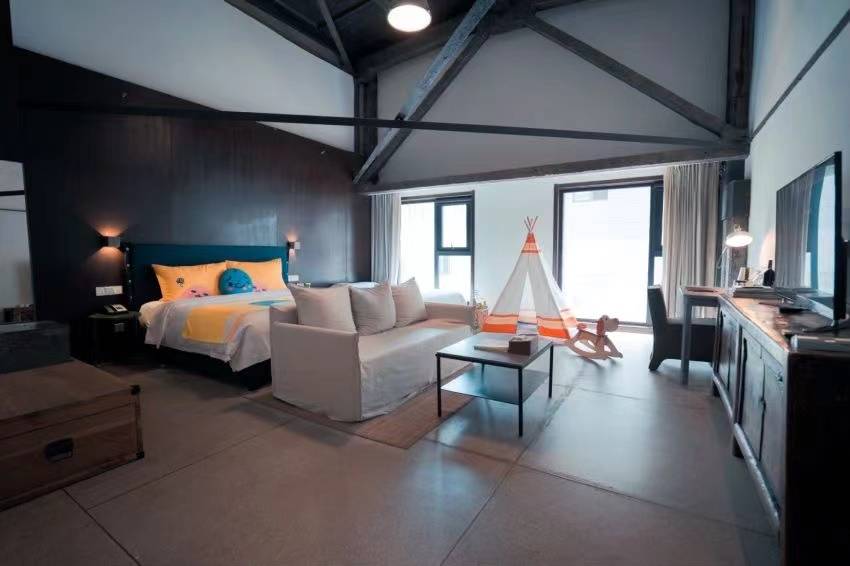 以前的老钢厂翻新后改成了特色酒店,和平时出差的商务型酒店不同,尤其喜欢带屋顶采光的露台,能望到以前的烟囱,采光和透气都很好。坐在露台吃外卖或者看方案都非常惬意,住了两个晚上睡得很安稳。人气很旺,一开始担心晚上会不会害怕,结果发现还有带小朋友的家庭,很热闹。外卖会直接送到房间门口,非常方便,酒店免费的早餐也很有诚意,碰到的工作人员都热情有礼貌。所处的园区有特色,很多年轻人,非常有活力的一个街区,附近买吃的和日用品都很方便。下次如果还来周边出差一定再次入住