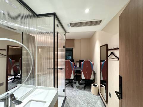 金坐标电竞酒店,融合住宿与电竞娱乐的全新概念空间。这里,每间客房都配备高性能电竞设备,包括专业游戏电脑、高速网络及舒适的人体工学座椅,确保每位电竞爱好者都能享受超值游戏体验。酒店装修风格为:侘寂风,氛围感十足,同时提供高品质的床品与卫浴设施,让玩家在激战之余也能得到充分的休息。无论是组队开黑、电竞比赛还是休闲聚会,电竞酒店都是您的理想选择,让每一次入住都成为一场难忘的电竞之旅。