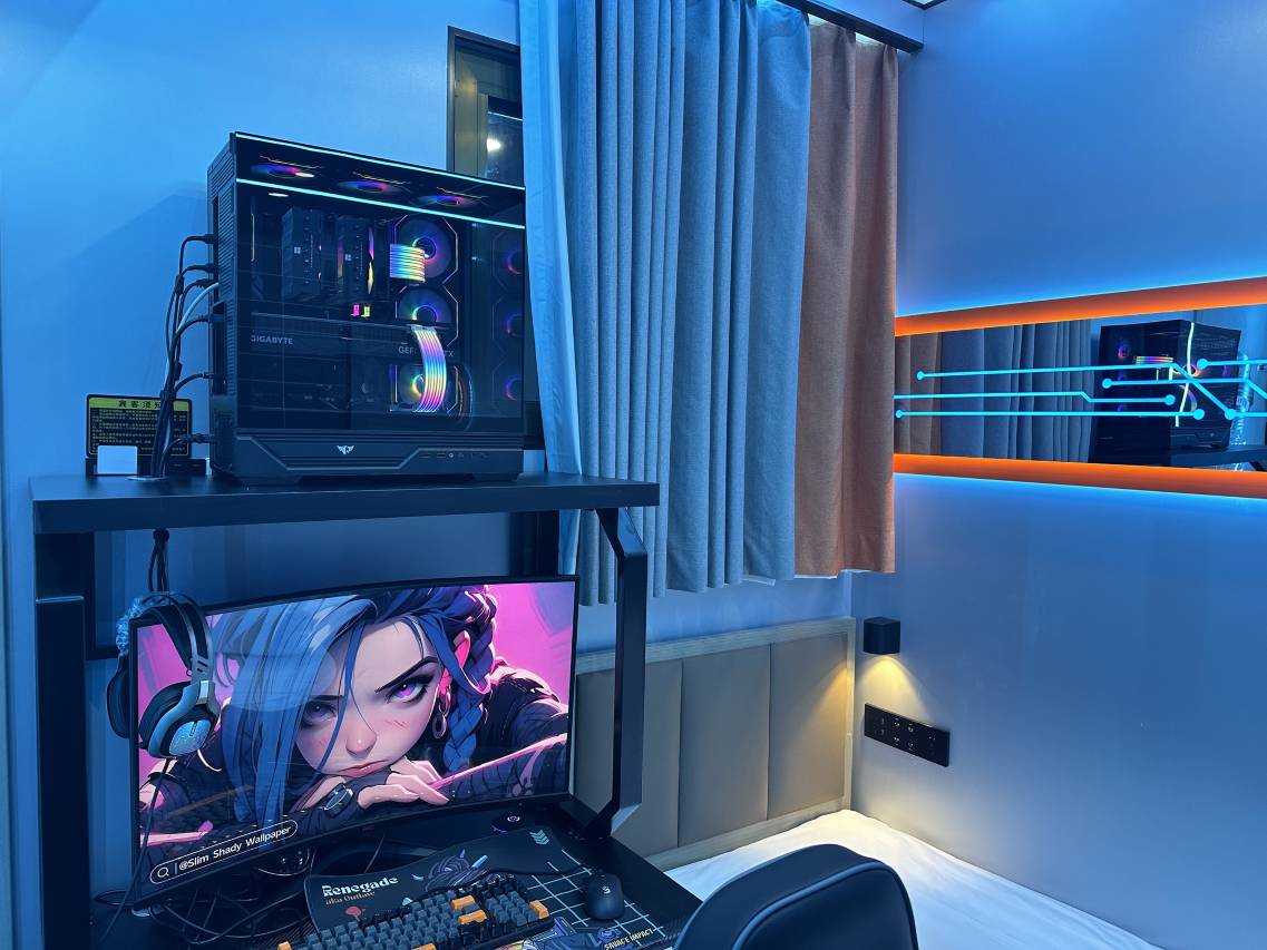 怎么说呢,这已经不是麻雀虽小五脏俱全了,简直就是我的梦中情房,那些个氛围灯和精准优雅的空间分布,都是满分,作为电竞房超出了一般电竞房重外设轻居住的属性,如果有下次我仍然会选择这里入住