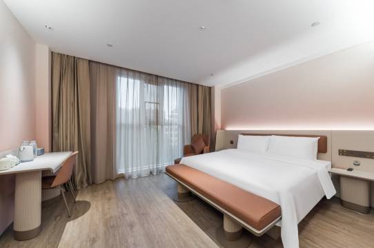房间环境可以,然后工作人员的服务态度是很好的。我们到的比较早,然后上午因为满房状态是没有办法办入住的,但是工作人员跟我们说可以先把行李放在那边,然后我们就把行李放那儿又出去玩了。有房间空出来的时候又和我们打电话了,问我们需不需要先锁房。还是很不错的哦。门口就是公交站台,坐公交的话还是挺方便的,离地铁站有1km多。早饭还是很不错的,有本地特色牛肉面,小馄饨也很好吃,强烈推荐小馄饨。点外卖的话,小机器人会送到房门口,也很方便哦。总的来说是非常非常非常满意喽。