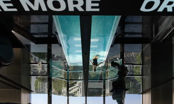 ✅ 赛博大堂:暗黑系设计+机械臂+超大景观泳池,科技感拉满,随手拍都是未来感大片