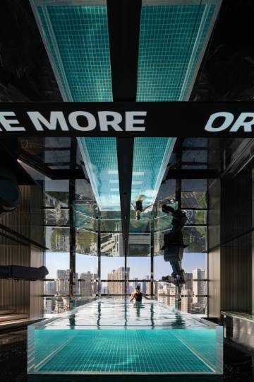 ✅ 高空泳池客房:15楼全落地窗+临窗浴缸,泡澡看夜景🌃智能全屋,语音控制超方便;干湿分离+智能马桶,舒适度up