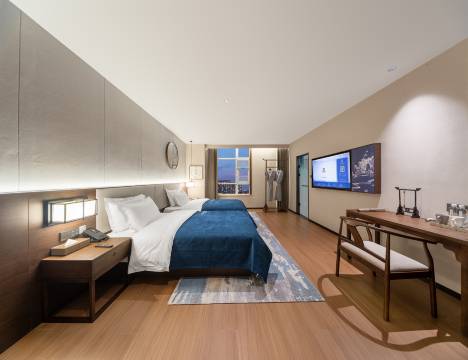 酒店隶属于仟那酒店集团,酒店位于郏县东坡路南段,体育馆对面,酒店设计风格呈现大气典雅的新中式风格;全屋定制实木家具,床垫根据人体设计30公分高,里面增加了3公分厚的天然乳胶,床品使用的是60x80支数纯棉面料,柔软亲肤,完美贴合仟那品牌“静下心,深睡眠”的特性。 房间配有洗护沐用品齐全,房间配有55寸TCL液晶电视,全屋5G网络覆盖,有线、直播、投屏等多种观影体验,戴森同款吹风机,满足客户的不同住宿需求。