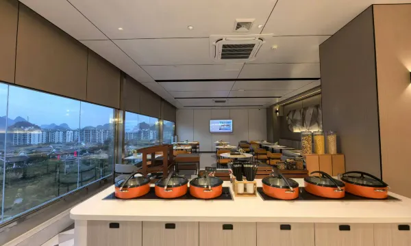 这家店就在锦绣古镇对面,出行很方便,晚上吃完饭还能在对面逛一逛。酒店整体都挺干净的,有洗衣房可以洗衣烘衣非常方便。我们订的家庭亲子房,房间还挺大的,一张大床,一张小床。有一个大的投影仪可以投屏看电视电影。房间的拖鞋穿起来很舒服,酒店的早餐虽然比较简单,但是味道不错,咖啡的味道挺好的,煮的粉也很好吃。