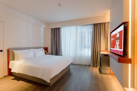 回老家过年,怕在老人家里住的不方便,便提前一个多月预订酒店,对比了很多才订了这家酒店。酒店是2024年9月份新开的,首先设施都是新的,环境和卫生各方面都不错。前台小姑娘服务很好,我们是除夕下午入住的,酒店免费给我们升级成豪华大床房,还另外又赠送了一份早餐!另外特别点评一下:作为一家连锁快捷酒店,他家的早餐还是可圈可点的,大家可以看一下我的图,除了西式的简餐,还有一部分中餐明档现做!确实不错!