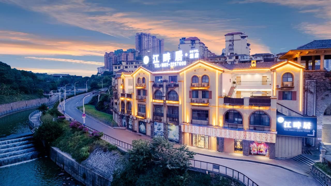 江畔居酒店地址位于遵义市赤水市三十里河滨大道中路2号。本酒店占地面积约1000多平方米,酒店依赤水河而建,面朝湿地公园、庭院式酒店共3层,简约轻奢的装修风格,近邻城中心红军大道,交通便利沿途建有公交车站台,周边各色美食汇聚。酒店拥有各式房型,酒店配备了健身房、自助洗衣房、茶楼及早餐厅。 客房主要分布于酒店2-3楼,有双床、多种大床房房型。房间设施设备齐全、高品质床上用品、房间统一配备了乳胶零压枕、采用人体工学床垫改善睡眠、淡雅味七彩瓶香薰、厕所采用干湿分离。部分朝阳靠河玻璃观景房,面临飞湿如瀑的潺潺河水,展示了现代气息,又流露出自然韵味。部分朝向庭院式雅居房,小憩享受夜幕灯火星空相伴也是诗意的景色。