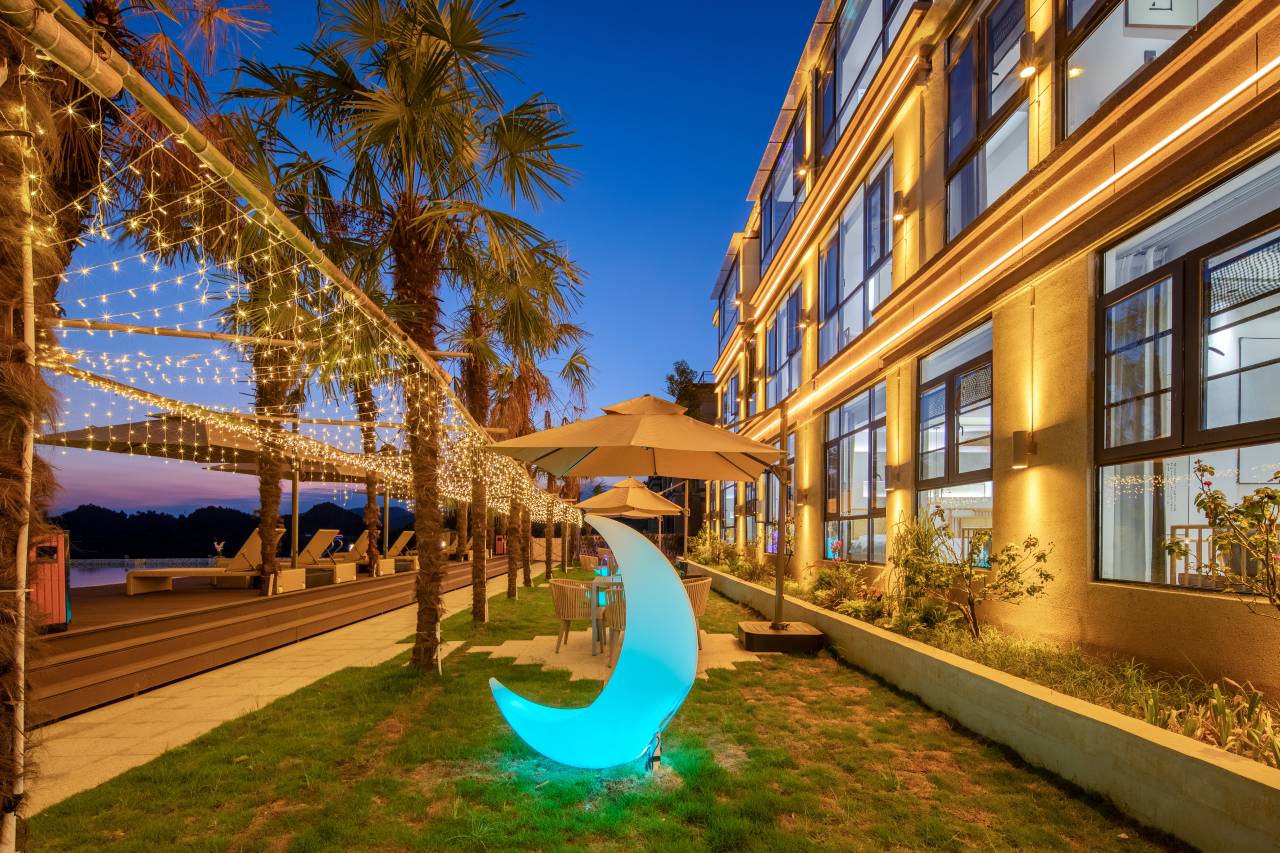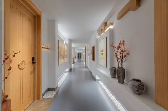凤凰揽月度假酒店位于凤凰县九里边城,毗邻各大交通枢纽,坐拥凤凰两站一心,交通便捷,出行方便。民宿占地4500平方米,拥有雅致宁静的客房及套房,设计师独具匠心的将中式美学与创新科技相结合。房间装饰高贵典雅,全屋智能,且巧妙融入了中国传统文化元素。走廊格调雅致,置身其中,静谧优雅的氛围让你即刻体验到家的温馨。房间内各种智能设备,贴心满足客人的多种需求。民宿同时配备无边泳池,中西餐厅,儿童乐园,健身房及瑜伽室,代表着凤凰的潮流与风尚,在让客人体验奢华享受的同时,也能感受到传统热诚的尊贵服务和优雅贵气。
