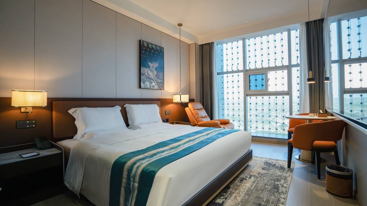 新开的酒店,房间干净卫生无异味。设施都是一流的品质,床铺软硬适中,特别是智能马桶卫生方便。早餐非富多样,菜品可口、有地方特色小吃。停车方便,出行方便,下次还住他家酒店。