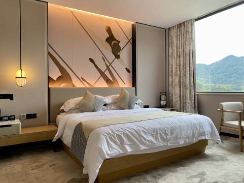 满意。去完望仙谷,然后第二天去景德镇,望仙谷到酒店开个1个小时到。酒店挺干净也很安静,服务也不错,旁边是个湖,景色好看。
