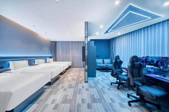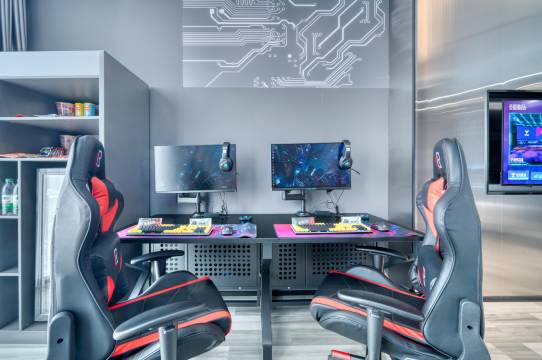 外设旗舰款,键鼠零延迟,比我家里的装备还顶!凌晨三点想打游戏随手就开机,再也不用担心网吧关门。 房间灯光可调游戏模式,隔音效果绝佳(半夜开黑不怕被投诉)床头有手机支架和充电线固定位,细节到位。前台24小时有人值班,凌晨2点要换鼠标垫/泡面筷子,打电话3分钟就送到。对比周边网吧通宵+钟点房的价格,这里人均200+就能享受高端设备+住宿,还省了打车钱。矿泉水/可乐免费续,泡面种类齐全(建议自己点外卖更香)。 纯粹为电竞而生的酒店!硬件和服务都精准戳中玩家痛点卫生也做得比较好,服务也很热情到位,对于需求的解决也很及时