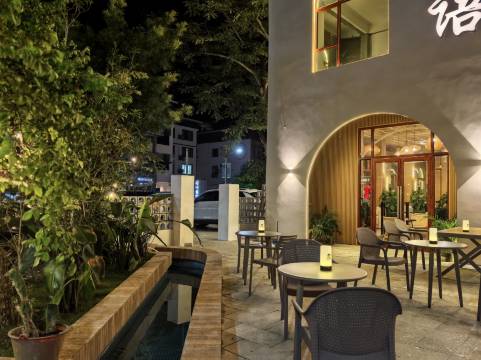 外观暖暖的,第一层是咖啡厅,很有小资情调。位置很棒,靠近鱼鳞坝和小镇中心烧烤区,楼下租车和吃饭都很方便,对面拾味馆饭菜味道挺好的。房间有智能马桶,有早餐,整体不错。只是双床房每个床上只有一个枕头,有点少。早晨是被楼道里的声音和隔壁房间电视声吵醒的。门不大隔音。遗憾的是雨水期鱼鳞坝水位涨的厉害,没有体验到。