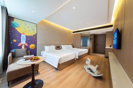 前台小姐姐帮忙升级了房型,态度特别好。房间配置齐全,床垫超级舒适,新风系统几乎静音,睡眠感觉很棒。酒店干净,交通便捷,服务人员专业又尽责。强烈推荐