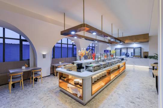 丰富早餐,开启活力一天:酒店的早餐种类丰富,中西式菜品应有尽有,新鲜水果、精致糕点、现煮咖啡……每一口都能感受到食材的用心和美味,为一天的行程注满能量。